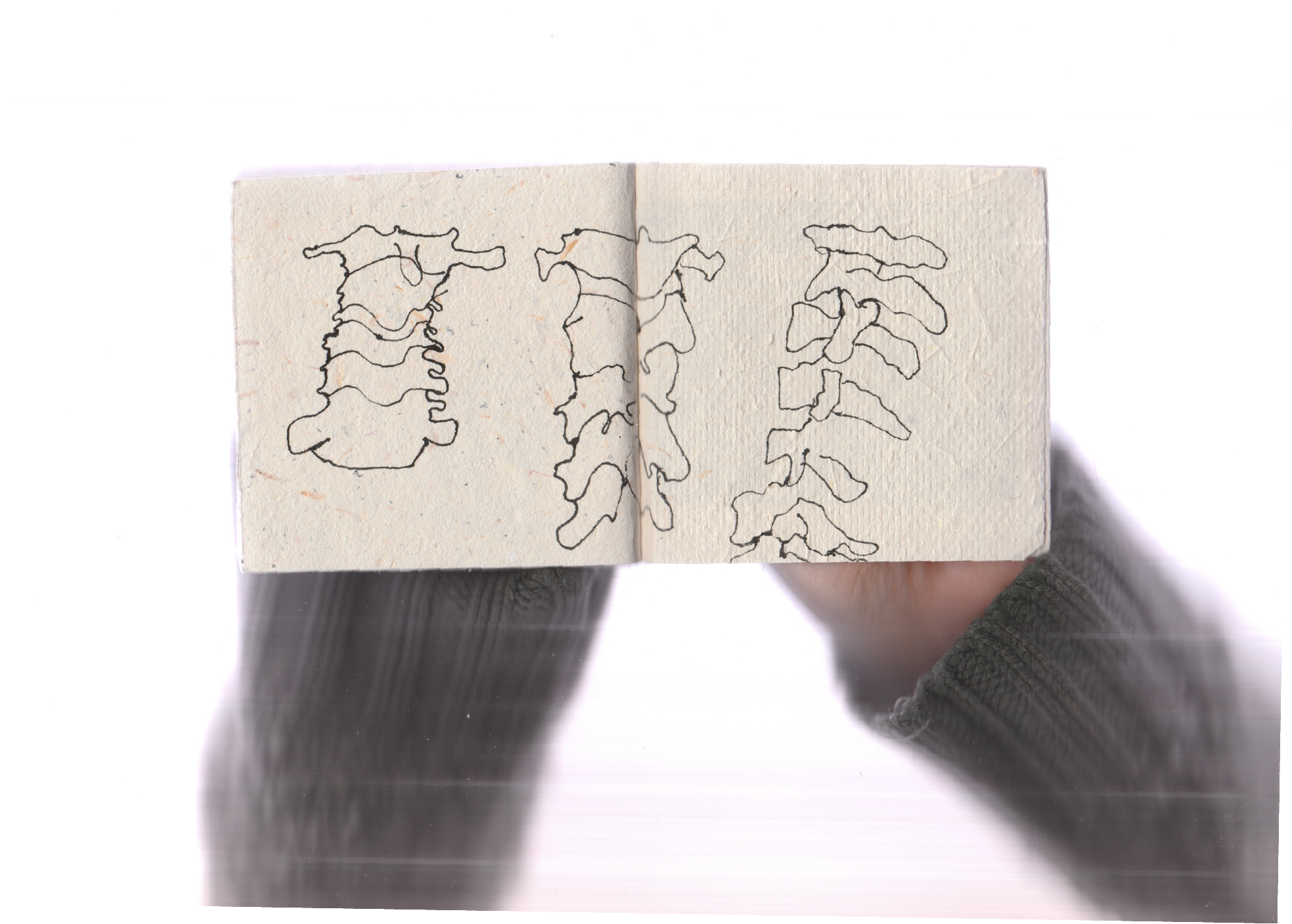 First, I look at an anatomical structure in the human body and wonder. I draw the structure on paper, then write thoughts, memories, and questions. I embody the questions in stillness, movement, and in relationship to other forms and bodies in space. I use resources from movement approaches I have studied including martial arts, traditional dance from Congo and West Africa, and the Axis Syllabus.